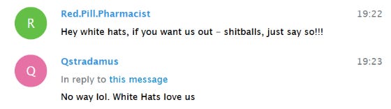 @RedPillPharmacist: Hey, white hats, if you want us out - shitballs, just say so!!!
