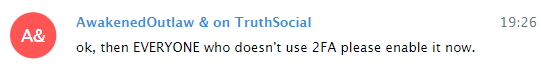 The group doesn't seem eager to switch platforms, so @AwakenedOutlaw wants everyone to use 2-factor authentication, an added security measure.