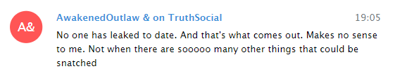 But they STILL haven't figured out how the picture got onto Truth Social, so that's a problem.