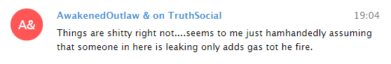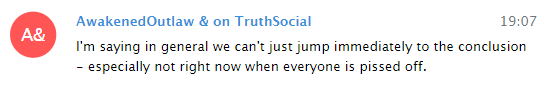 @AwakenedOutlaw seems to agree, and states that this incident is causing a rift within the group on the day they're taking heat from all sides.