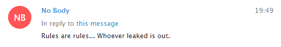 No Body says that whoever leaked the photo is bound for removal from WTM.