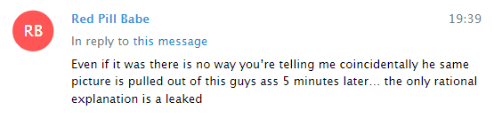 Exhibit A, the subject of this drop, is the event most frequently mentioned by members of WTM - a photo which was claimed to have been leaked from the private We the Media chat channel on Telegram....except it wasn't actually leaked. The picture was acquired through some other means, but the damage done to WTM while the group was figuring this out was substantial.