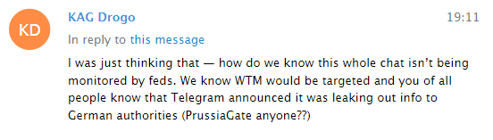 @kagdrogo: Telegram recently announced it was leaking info to the Germans, so how do we know this chat isn't being monitored by Feds?